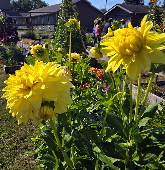 Over time, this hobby of mine has flourished. I expanded the space in my yard devoted to growing dahlias, participated in various shows where dahlias are judged and displayed, began growing dahlias at Saint Charles Catholic Church, and became a member of the Wild Rivers Dahlia Society which was organized and operated by Bob Chibante, who is a local expert in growing dahlias. Also, beginning this year, I have planted and help grow dahlias at the Riley Creek School Garden in Gold Beach (managed by Master Gardenertm volunteers). I now grow about 350 dahlias, representing some 100 varieties and almost all of the classification types (such as formal decorative, informal decorative, poms, semi-cactus, stellar, laciniated, collarette, single, orchid, waterlily and ball). Flowers are in almost all colors but blue (which is genetically not possible with dahlias). Please see attached pictures of our home dahlia garden. My favorite varieties include Galaxy, Citron du Cap, Elma Elizabeth, Helen Richmond, and Honey Dew. My wife Cathy and I share cut flowers with the community and never charge for them. Cathy is especially talented in flower arranging.