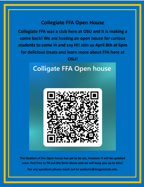 The Food Recovery Network is a student club that works to reduce food waste and hunger. Food recoveries involve collecting surplus meals from campus dining halls and local restaurants and delivering to nearby food banks. There are recovery opportunities on campus and transportation will be provided for off-campus events. Recoveries involve repackaging food and driving to local partner agencies. A food handlers’ card is required but the cost will be covered by the club. More information can be found on their instagram or by emailing clara.honsinger@oregonstate.edu.