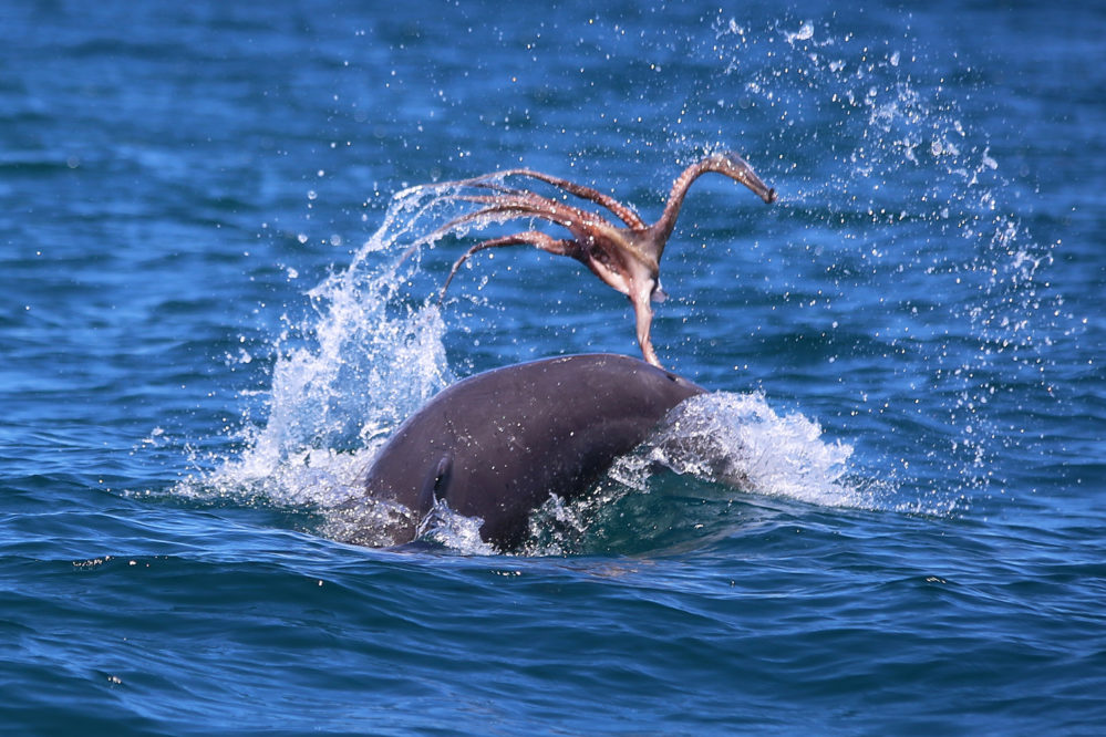 Next Image Octopus_MandurahCruises An bottlenose dolphin forages on an octopus. (Image source: Mandurah Cruises)