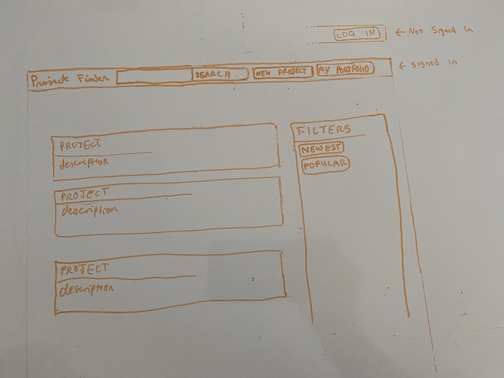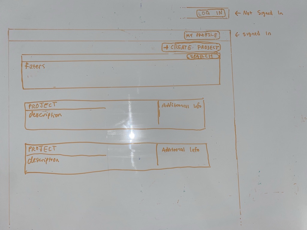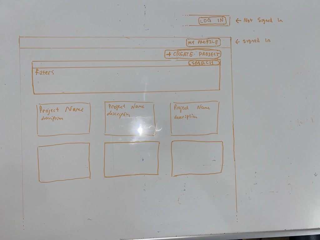 I believe the best use of wireframes are to generate a quick and imperfect sketch of a website. I understand the importance of creating wireframes in the process of designing a website. They are meant to be a visual guide of the skeletal framework of a website and can be adapted by designers to create a more high-res prototype of the design. I am not the best designer, so started sketching out a few different ideas on a whiteboard to rapid prototype and to get some feedback from my group.