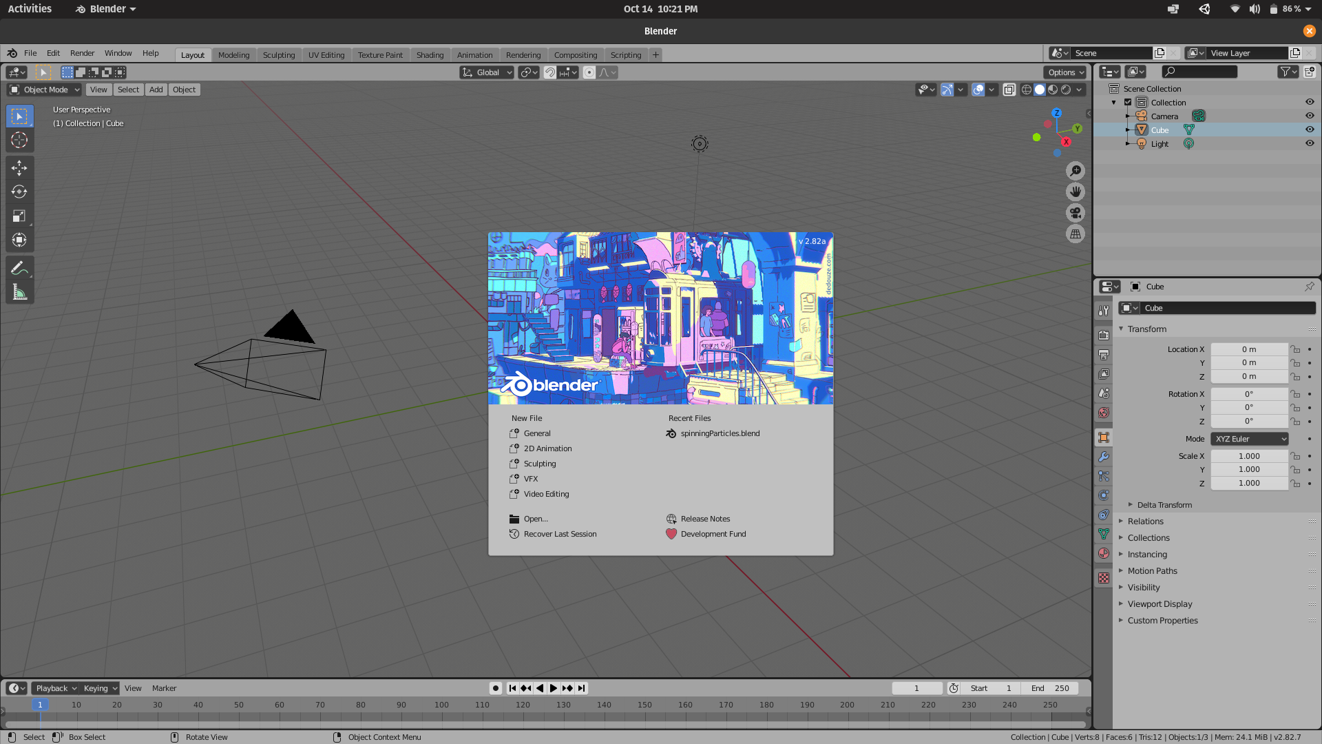 Blender really is the Jack of all trades which explains why it’s started to make its way into industry projects such as Spiderman (2004). Along with the praises came a brief mention of the steep learning curve. Below is a glimpse of the confusing and overwhelming Blender welcome!