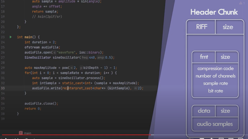 Between this binary Hex editor, and the video, I am equipped to look under the hood of an audio WAV file and understand where to extract the audio data. I can also determine if it is mono or stereo, the bit depth, and sampling rate.