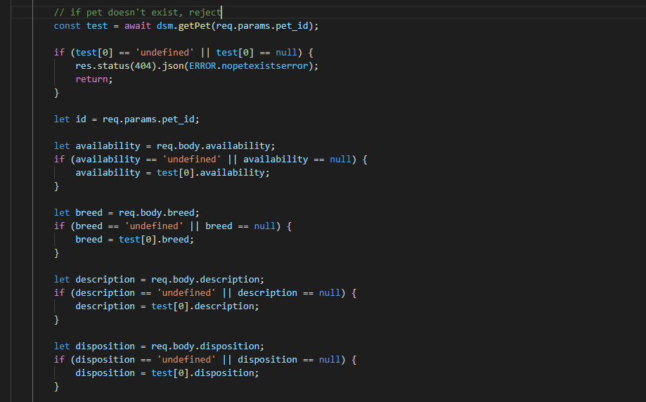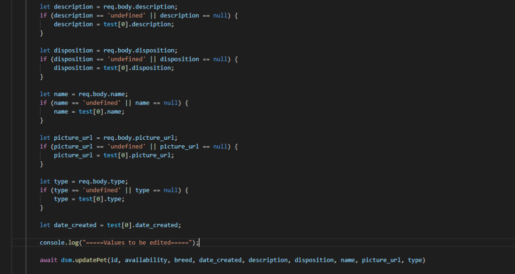 Updating on a NoSQL database is really different from a traditional DB. There is no concept of updating 1 value using an SQL statement. You are really fetching the values that already exists in the database and re-entering them as an entire “document”. See the code below, I had to test if it exists and fetch the old values and re-enter the values if they are not changed.