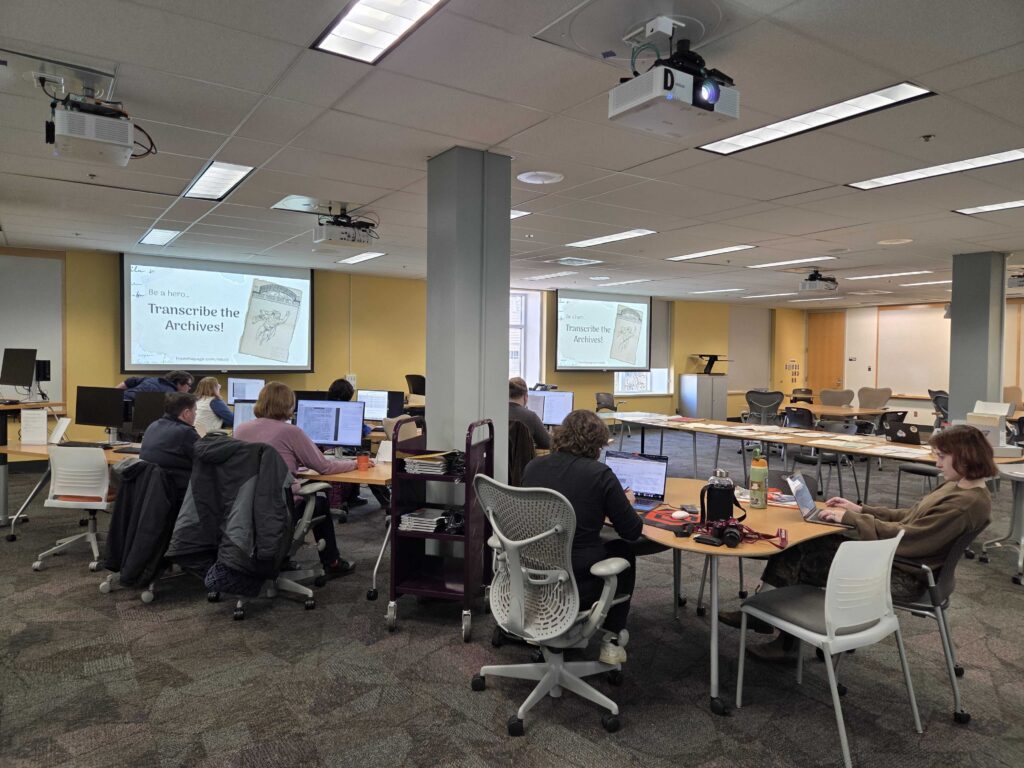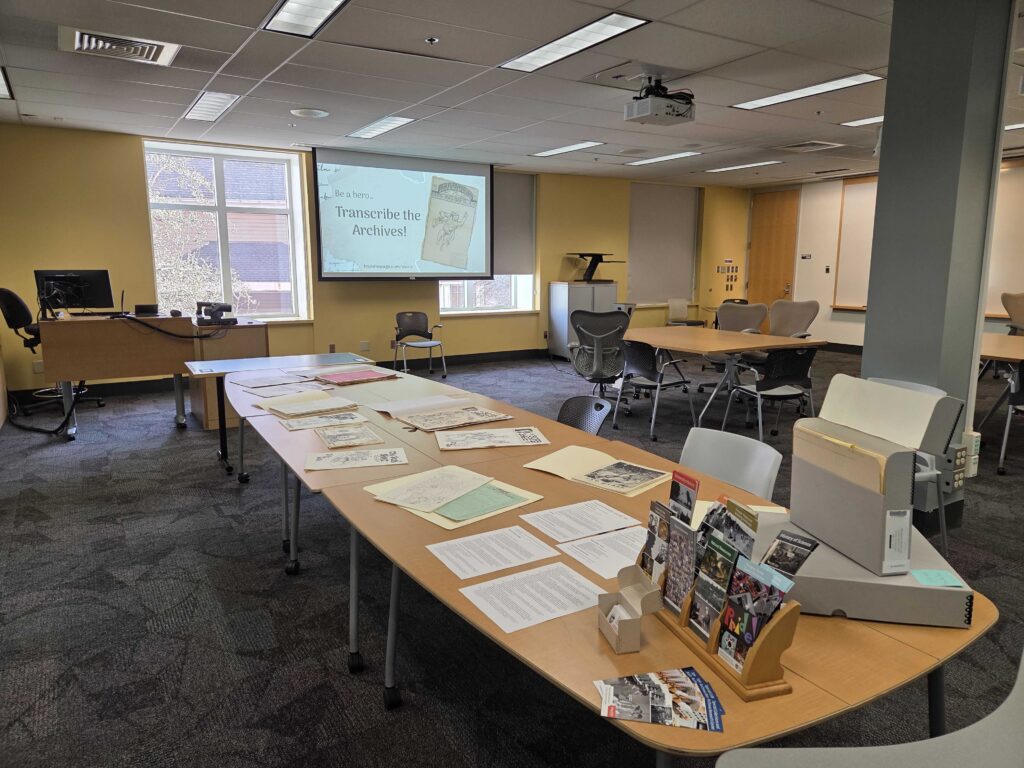 OSU’s SCARC has a number of projects available via From The Page: OSU SCARC for anyone to work on online from the ease and comfort of their own computers. In January 2026, we decided to host an event to engage in this work in-person with some selected materials for a special Transcribe the Archives milestone project.