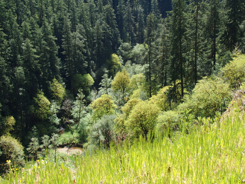 Some landowners might assess the forest cover across their property and see that it is fairly uniform in terms of age and species. In these instances, where there are no clear differences in forest types, consider if differences in topography and road access will require unique management approaches. For example, gently sloped areas can typically be logged with ground-based machinery while steep slopes would likely require a cable logging system. Other areas may have limited road access that constrains management. Topographic features can be identified using various online mapping platforms such as Google Earth and CalTopo or with paper USGS topographic maps.