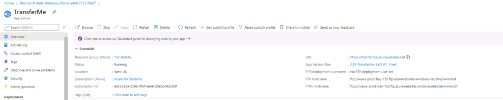 Ok, I admit, that is a terrible joke, for many reasons. I have been diving into the world of Azure web-hosting for use with our Transfer.Me website project. We need something that works well for hosting a Blazor WebApp so our group decided it might be best to keep everything in the Microsoft family, for better or for worse.