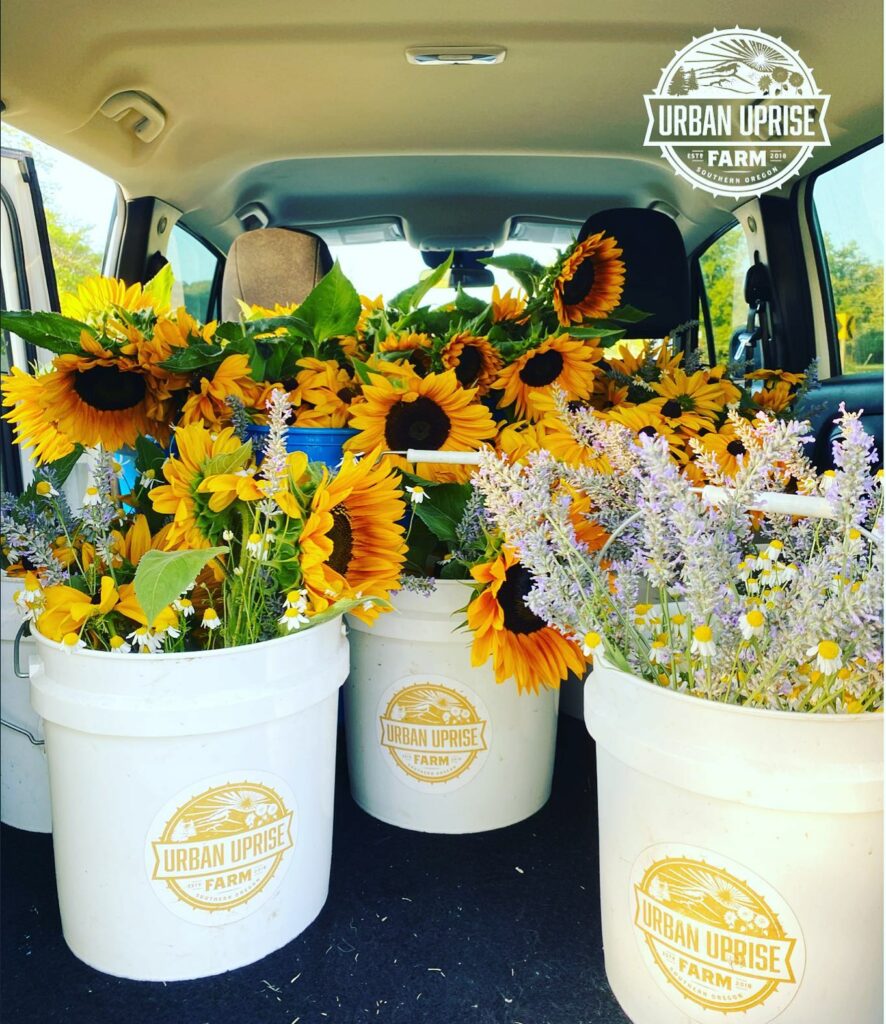 Already ravaged by the devastating social and economic effects of the pandemic, the Phoenix community also fell victim to the wildfires that swallowed up much of Northern California and Southern Oregon during the summer of 2020. Staff at Urban Uprise Farm revealed that the flames got within 800 feet of their property, and while they were fortunate enough not to lose any property or be harmed by the Almeda fire, the Shipley family’s remaining crops were wilted and deteriorated as a result of the thick smoke and ash in the air. Despite this meaning that the sunflower season ended a week earlier than anticipated, and refunds were issued to all upcoming bookings, this did not discourage staff at the farm from coming out on top. Although the flowers were no longer picture-perfect, all of the remaining heads were cut and placed in buckets, that would later line the streets of Phoenix as a tribute to those who returned from evacuating their homes. Additionally, Urban Uprise Farm promoted the link to the Almeda fire relief funds on their social media platforms and matched up to $1,000 of donations in support of the victims of this tragedy. Phoenix locals flooded Facebook with images of the sunflower-lined streets, grateful for the compassion and well-wishes that this small gesture conjured. It is efforts like these that set Urban Uprise Farm apart from other small businesses, and this is why anyone passing through Southern Oregon should consider stopping by this farm to support a family-owned business and to have a wonderful time.