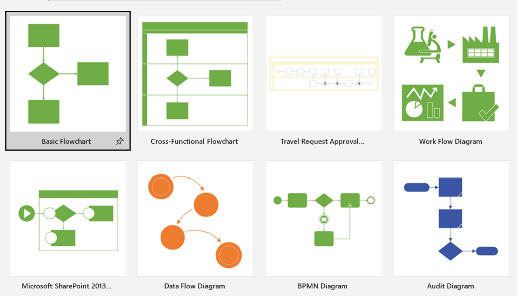 (1) Open Visio and click “Categories” – > “Flow Chart” – > “Basic Flow Chart” – > Create.